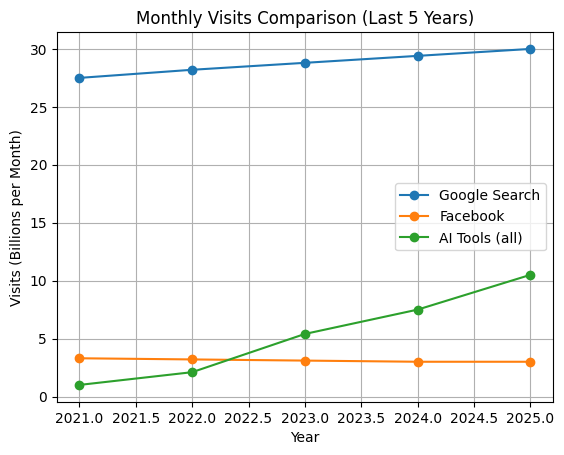 It seems like everyone is on Facebook, which is the biggest of Social Media. All of Social Media gets 3 billion visitors every month. That's a lot of visitors - until you compare.